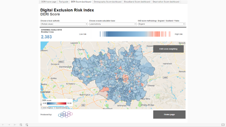 Put simply, the DERI is a dataset that shows where digital exclusion is most likely to occur. There is also a DERI tool we’ve created online, which is designed to allow you to explore that data.